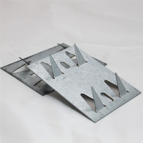 Impaling Clips werden verwendet, um Akustikplatten (703/705-Platine) leicht an Wänden anzubringen. Jeder Clip verfügt über 8 Spitzen, die sich in den Fiberglas-Panel-Träger anhalten und das Panel an Ort und Stelle halten. Die Abmessungen der Clips sind 2-1 / 8 \"x 1-1 / 2\". Die mangelhaften Klammern sind an der Wand entweder durch 1 Trockenmauerschraube (nicht enthalten) oder mit Klebstoff (Multi-Dichtung 180) installiert. 4-6 Impaling-Clips werden pro Standard-2 'x 4' Panel empfohlen, um sicherzustellen, dass ein Aufprallclip in jeder Ecke platziert wird. Bei Panelanwendungen, die einen Luftspalt erfordern, können Holzabstandshalterblöcke zwischen der Audiokablettsmontage-Hardware und dem Trockenbau installiert werden, um das Panel von der Wand abzusteigen.