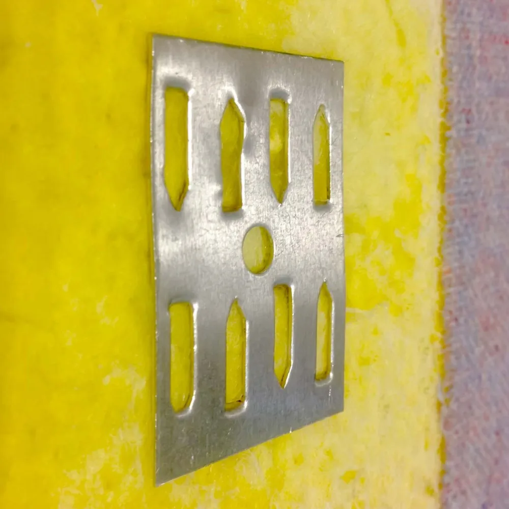 Impaling Clips werden verwendet, um Akustikplatten (703-Platine) leicht an Wände anzubringen. Jeder Clip verfügt über 8 Spitzen, die sich in den Fiberglas-Panel-Träger anhalten und das Panel an Ort und Stelle halten. Die Abmessungen der Clips sind 2-1 / 8 \"x 1-1 / 2\". Die mangelhaften Klammern sind an der Wand entweder durch 1 Trockenmauerschraube (nicht enthalten) oder mit Klebstoff (Multi-Dichtung 180) installiert. 4-6 Impaling-Clips werden pro Standard-2 'x 4' Panel empfohlen, um sicherzustellen, dass ein Aufprallclip in jeder Ecke platziert wird. Bei Panelanwendungen, die einen Luftspalt erfordern, können Holzabstandshalterblöcke zwischen der Audiokablettsmontage-Hardware und dem Trockenbau installiert werden, um das Panel von der Wand abzusteigen.