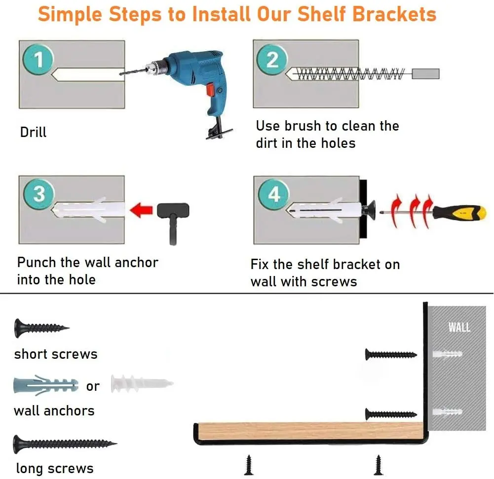 Regalhalterungen 10-Zoll-Hochleistungs-rustikaler schwarzer Eisen-Finish-Halterung